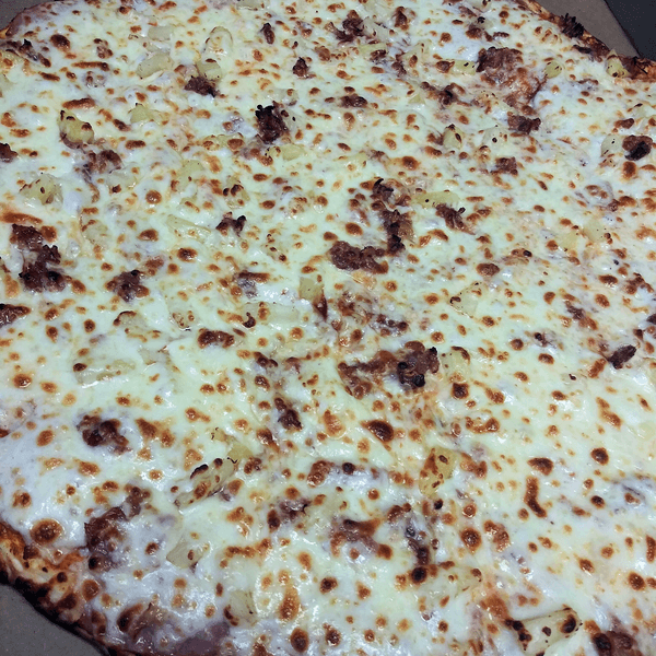 Our hand Crafted Hawaiian Pizza. Ham, Pineapple, Bacon, Extra Cheese!